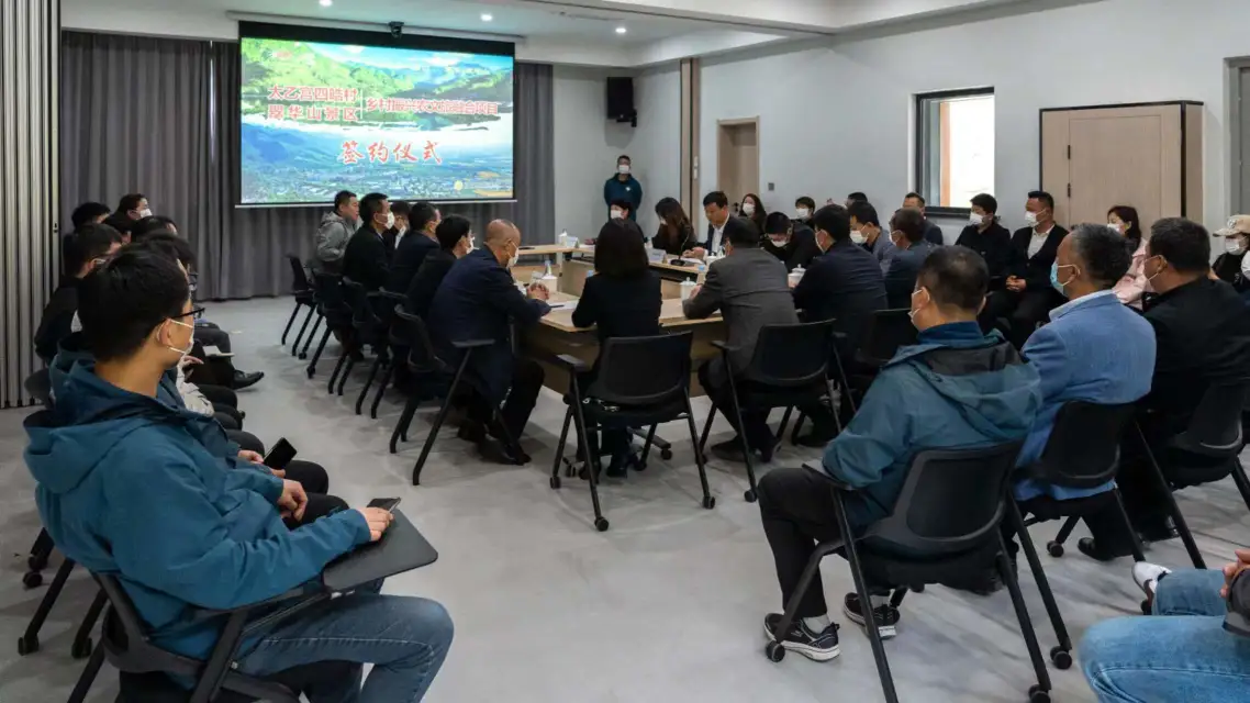 田園風(fēng)光秋韻濃,紅葉漫山醉翠華。按照西旅集團(tuán)“6+N”產(chǎn)業(yè)布局,積極響應(yīng)國家鄉(xiāng)村振興戰(zhàn)略,助力美麗鄉(xiāng)村建設(shè),加快“景區(qū)+鄉(xiāng)村”融合步伐。10月20日,終南山公司翠華山景區(qū)與長安太乙宮四皓村舉辦鄉(xiāng)村振興農(nóng)文旅項(xiàng)目合作簽約儀式。長安區(qū)文化和旅游體育局、長安區(qū)農(nóng)業(yè)農(nóng)村局、太乙宮街道辦、長安區(qū)鄉(xiāng)村振興公司、四皓村、終南山公司、翠華山景區(qū)等單位及鄉(xiāng)賢代表參加簽約儀式。